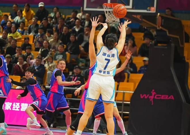 鄭茗壓哨三分出手,哨響球進。即使比分落后,球隊沒有放棄。王小青的續(xù)命三分幫助球隊延續(xù)懸念,馮可欣的漂移中投展現(xiàn)著姑娘們的態(tài)度。