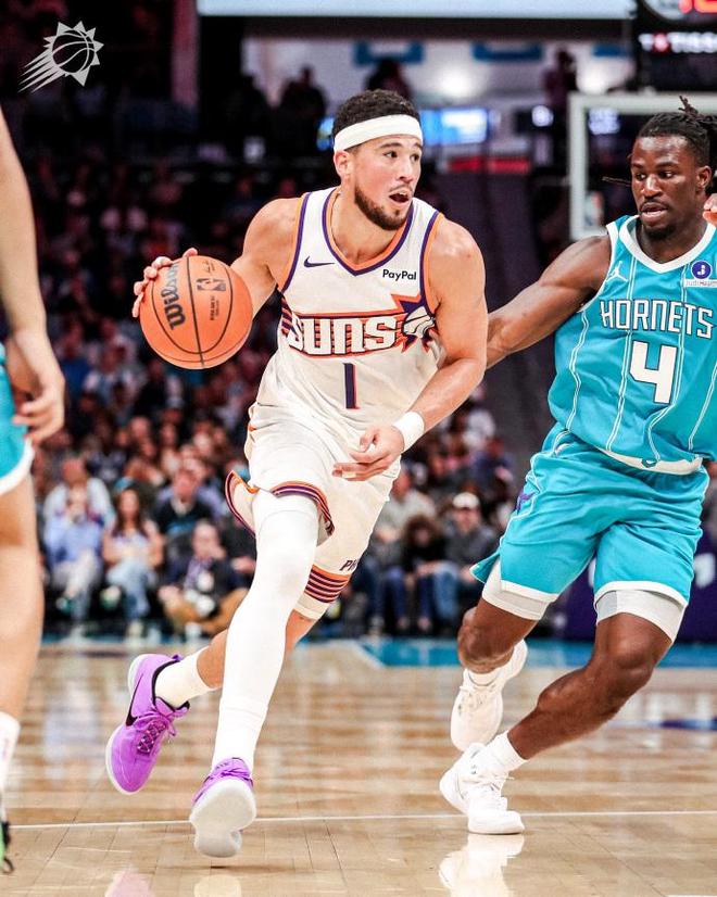 太陽上一場客場111-115惜敗魔術,黃蜂上一場客場117-86大勝籃網(wǎng),本賽季首次交鋒太陽主場111-99戰(zhàn)勝黃蜂。本場太陽缺少科菲,黃蜂缺少霍爾。首節(jié)雙方早早開啟對攻模式,開局階段黃蜂5-12落后,布克開局3中3獨得7分,黃蜂一波7-0攻勢追平。雙方隨后持續(xù)纏斗至23-23,太陽一波13-4攻勢取得領先,黃蜂有所反撲縮小差距,布克首節(jié)獨得12分,首節(jié)比賽結束黃蜂33-41落后太陽。