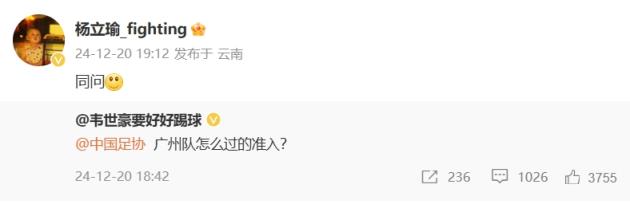 又來(lái)一個(gè)! 楊立瑜轉(zhuǎn)發(fā)韋世豪微博:同問(wèn),廣州怎么過(guò)的準(zhǔn)入?