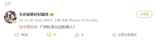 有內(nèi)情?韋世豪質(zhì)問(wèn)中國(guó)足協(xié):廣州隊(duì)怎么過(guò)的準(zhǔn)入? ???